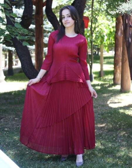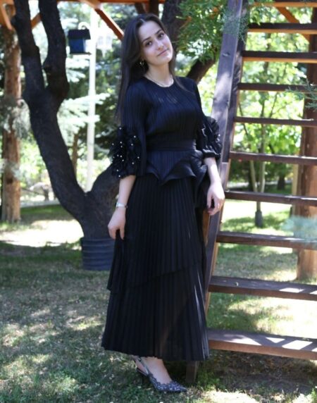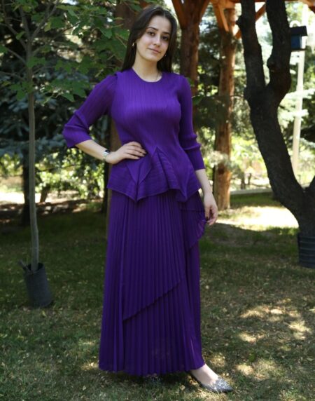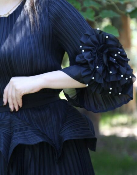 Çiçek Aplikeli Pliseli Petrol Mavisi Takım, klasik şıklığı modern dokunuşlarla birleştiriyor. Bel kısmında yer alan 3D çiçek detayları ve pliseli etek, tasarıma feminen bir zarafet katıyor. V yaka ve volanlı kol uçları ise kombini hareketlendirerek dikkat çekici bir görünüm sağlıyor. Hafif ve akıcı şifon dokusu sayesinde konforlu kullanım sunan bu takım, özel davetler ve özel günler için kusursuz bir tercih.